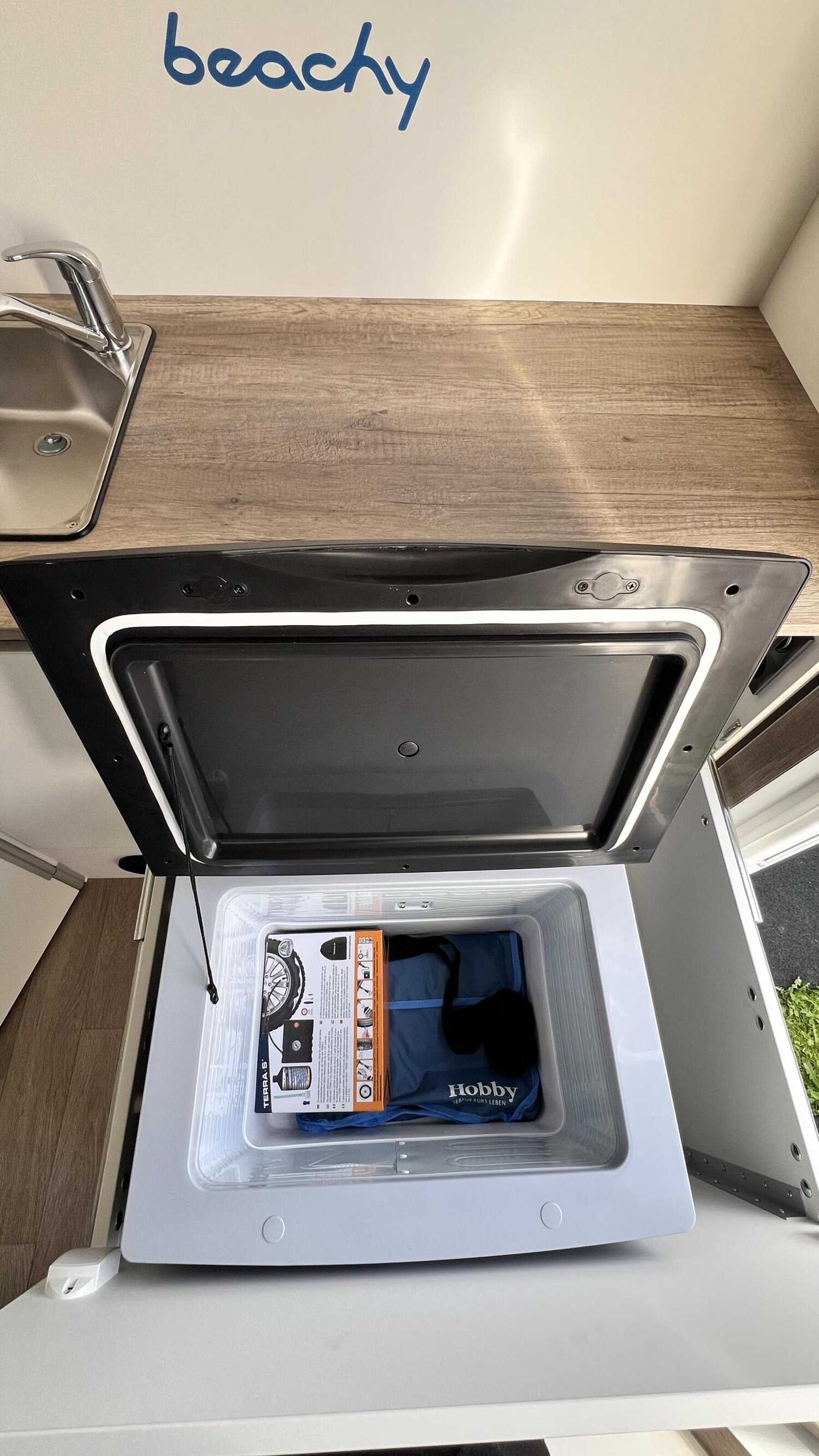 HOBBY-KOMPLETT-VOLLAUSSTATTUNG beinhaltet folgende Ausstattungen: Antischlingerkupplung KNOTT; Auflaufbremssystem KNOTT ANS mit automatischer Bremsnachstellung; Radstoßdämpfer; Schwerlaststützen; Zulassung auf Tempo 100; Vorhängefenster, ausstellbar, doppelt verglast und getönt; Kleiderschrank mit Innenbeleuchtung, begehbar; Kühlbox DOMETIC; Rauchmelder; uvm.