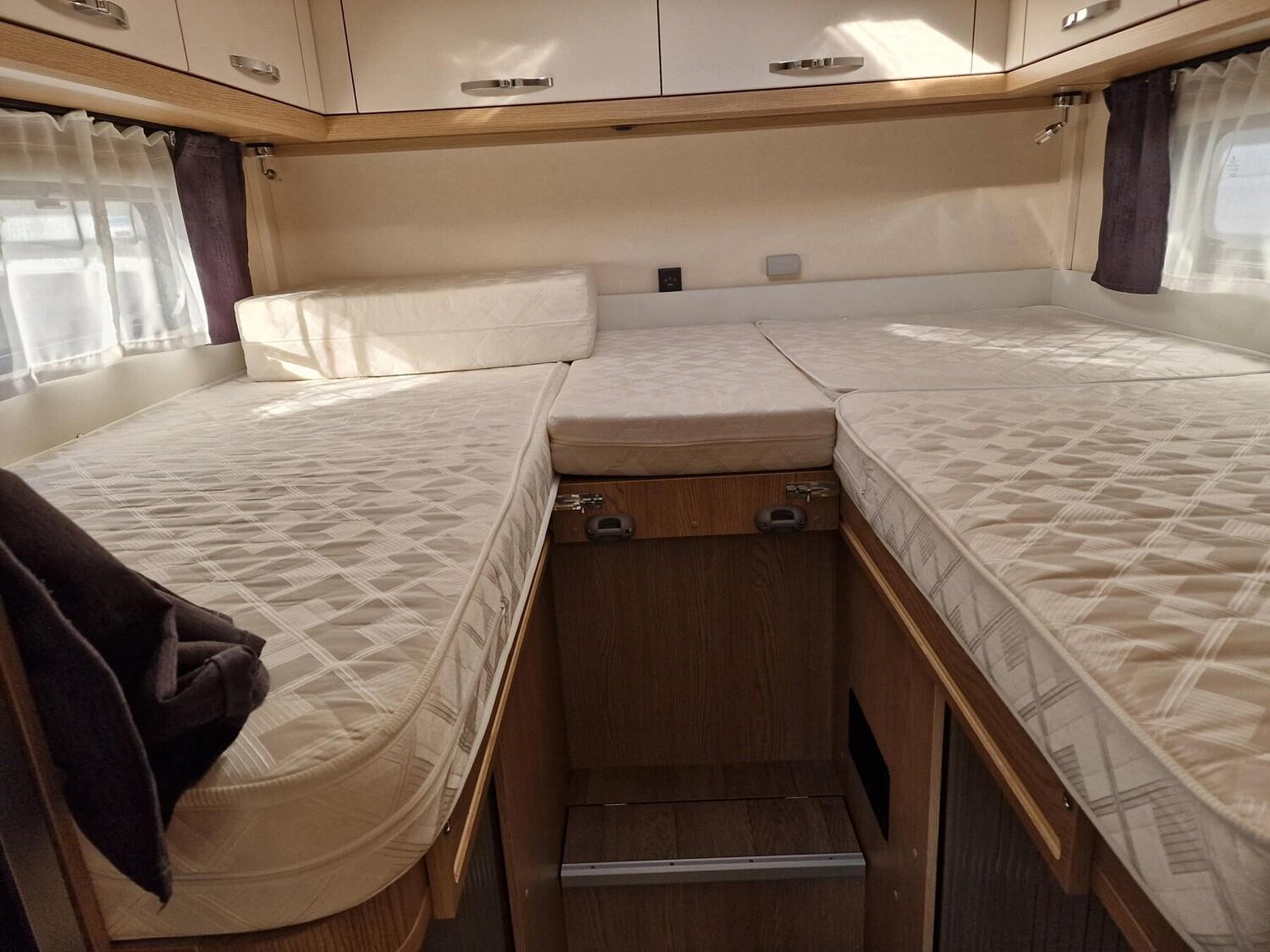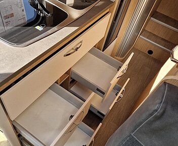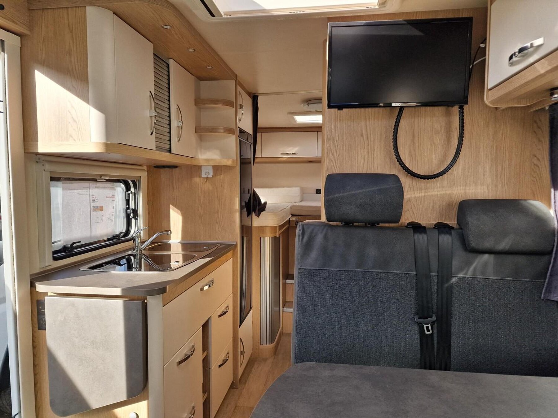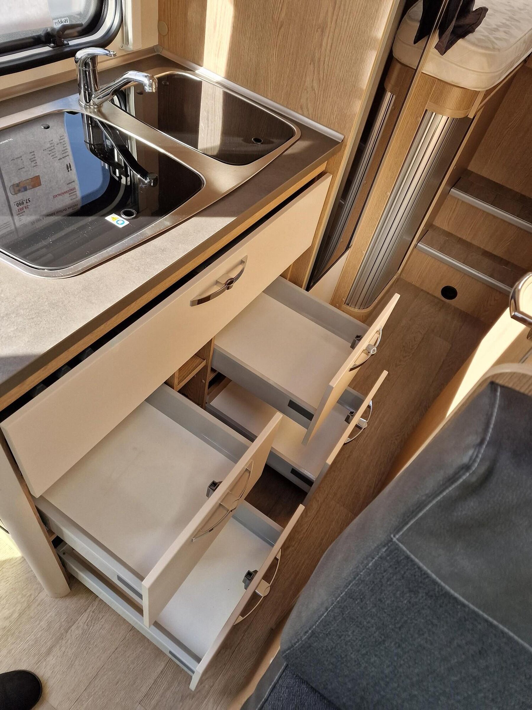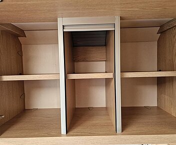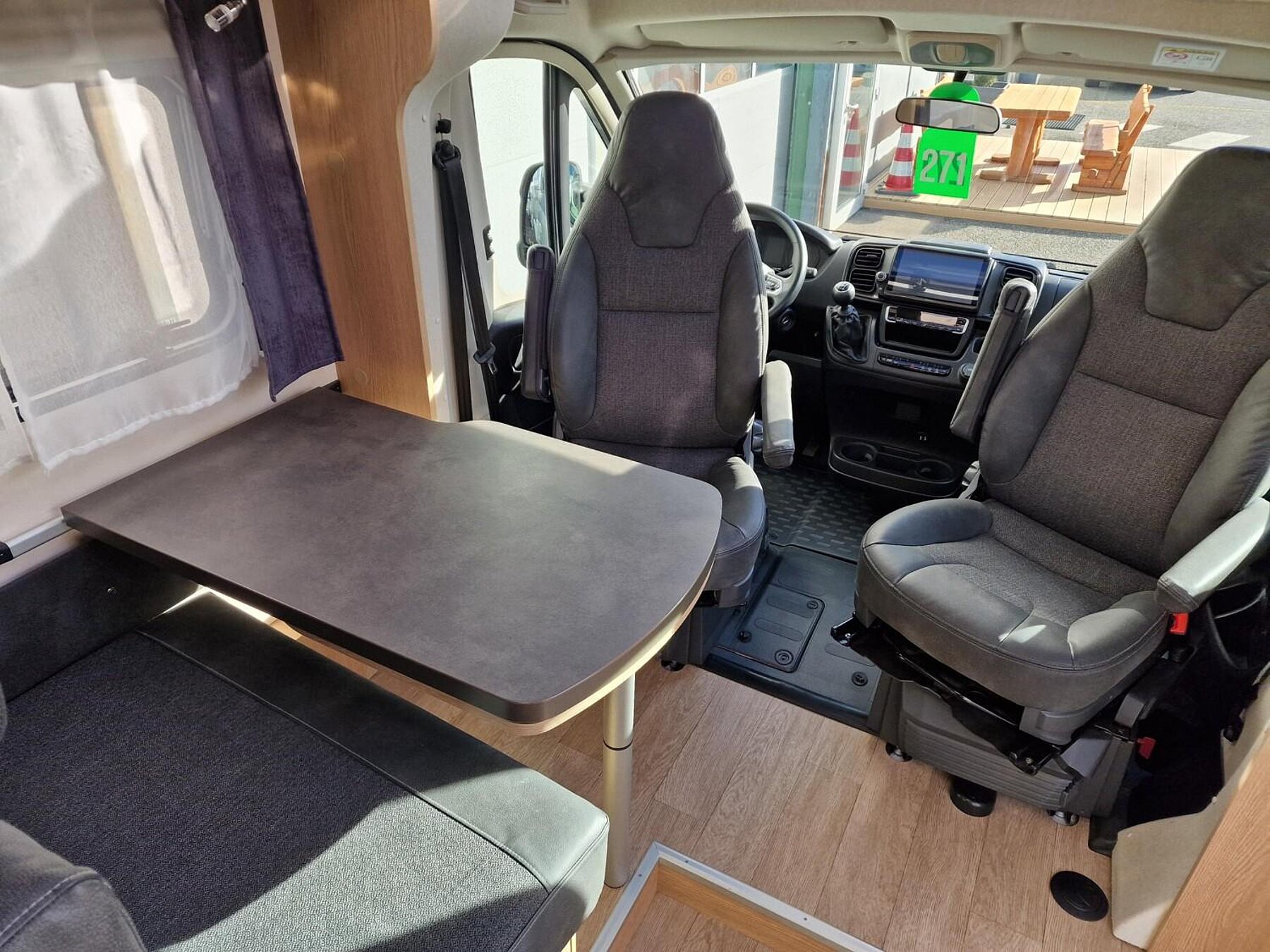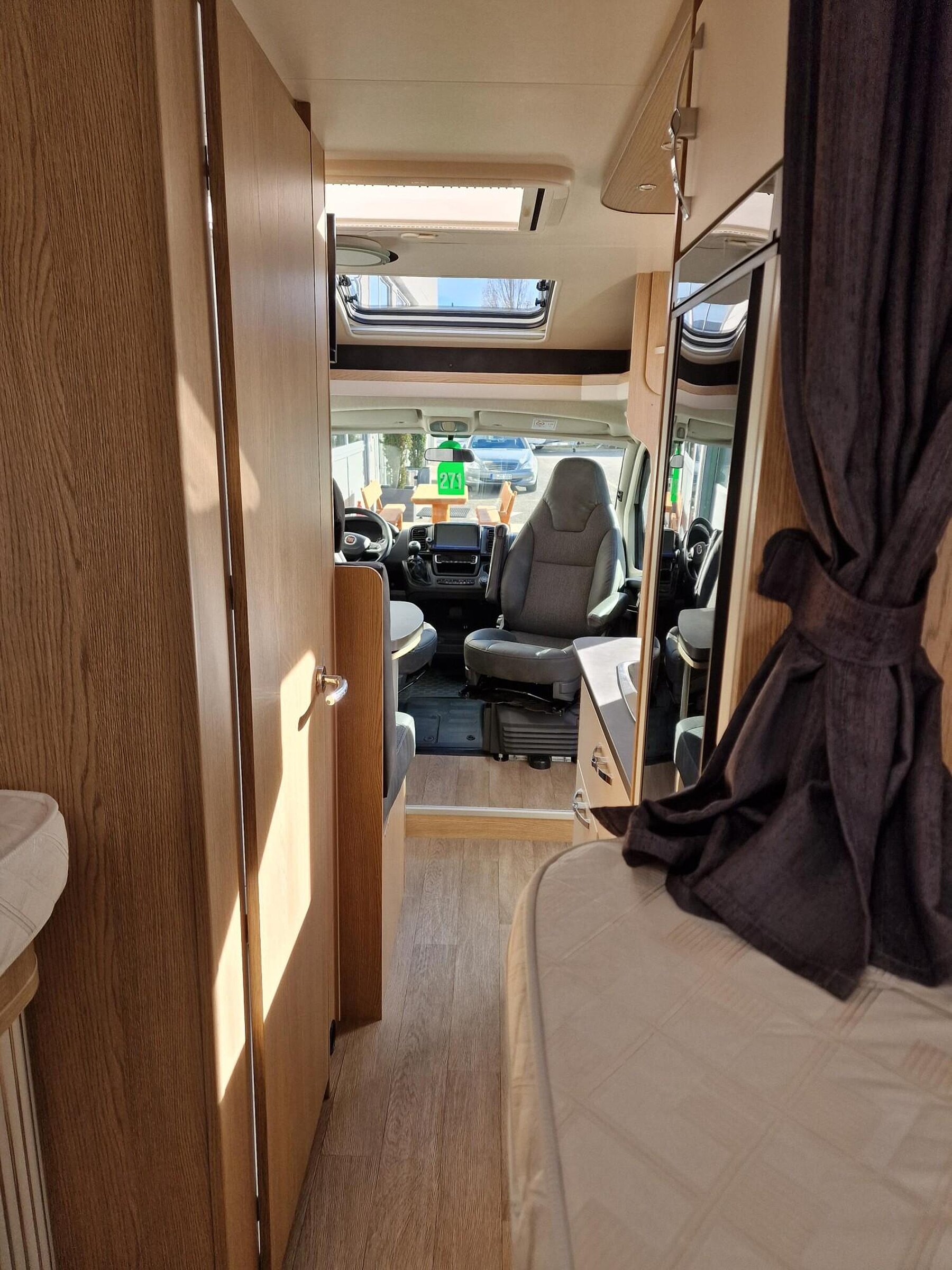 - Vorhängefenster, ausstellbar, doppelt verglast und getönt, auf der Fahrerseite im Schlafbereich, 840 x 260 mm