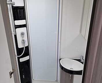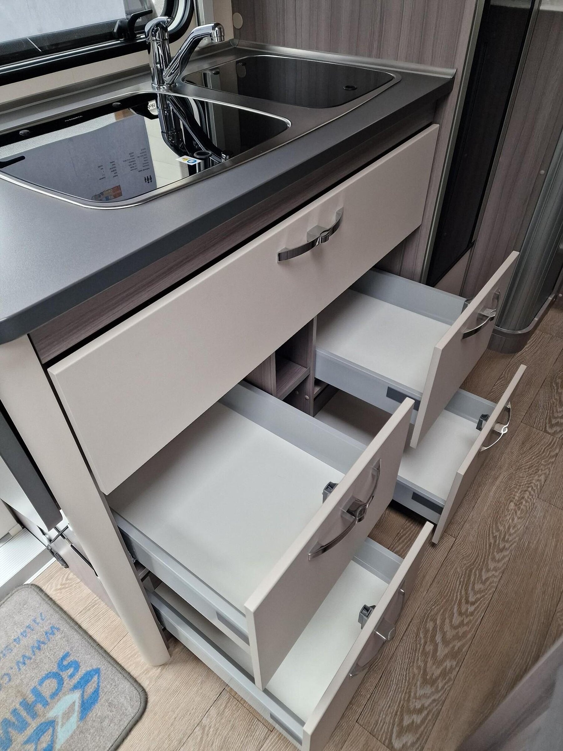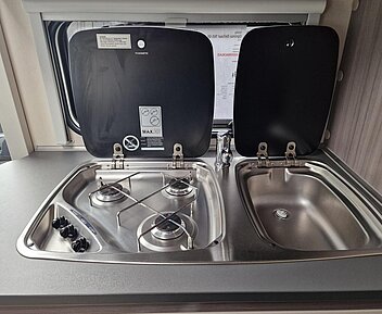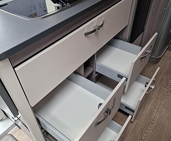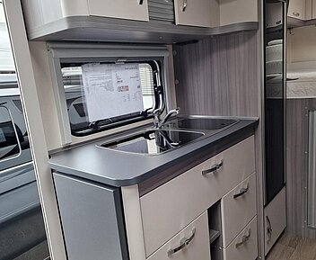 - Vorhängefenster, ausstellbar, doppelt verglast und getönt, auf der Fahrerseite im Schlafbereich, 840 x 260 mm