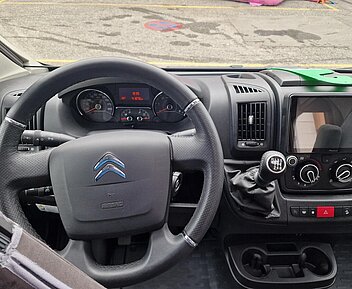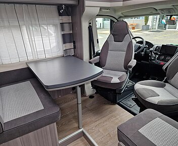- Fahrer- und Beifahrersitz mit Wohnraumstoff bezogen