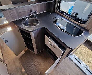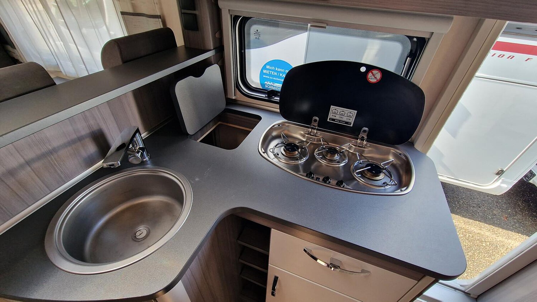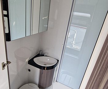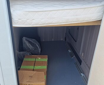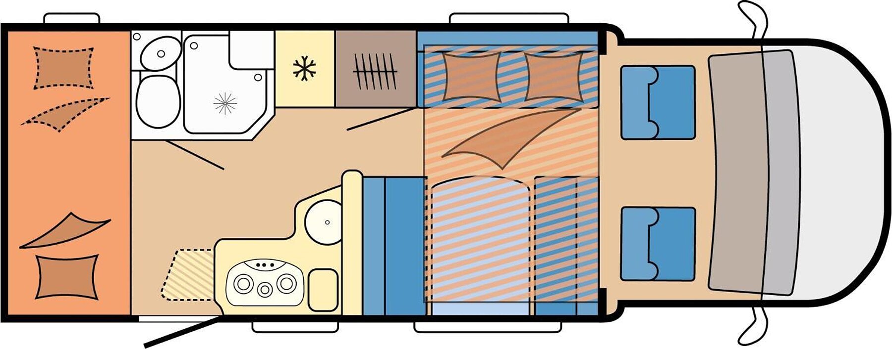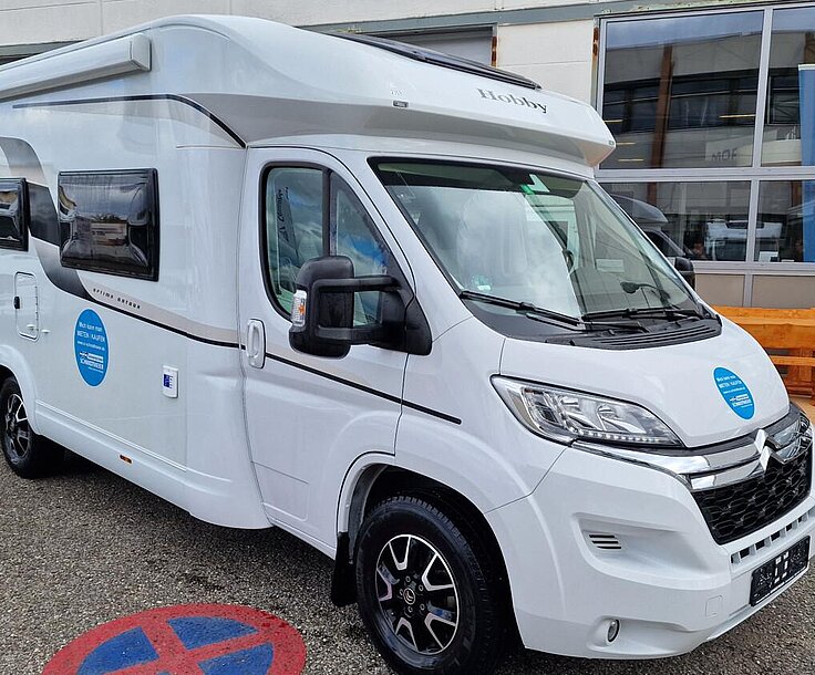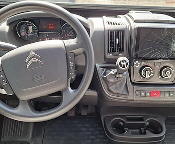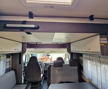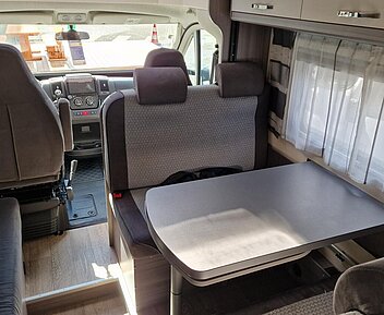 - Fahrer- und Beifahrersitz mit Wohnraumstoff bezogen